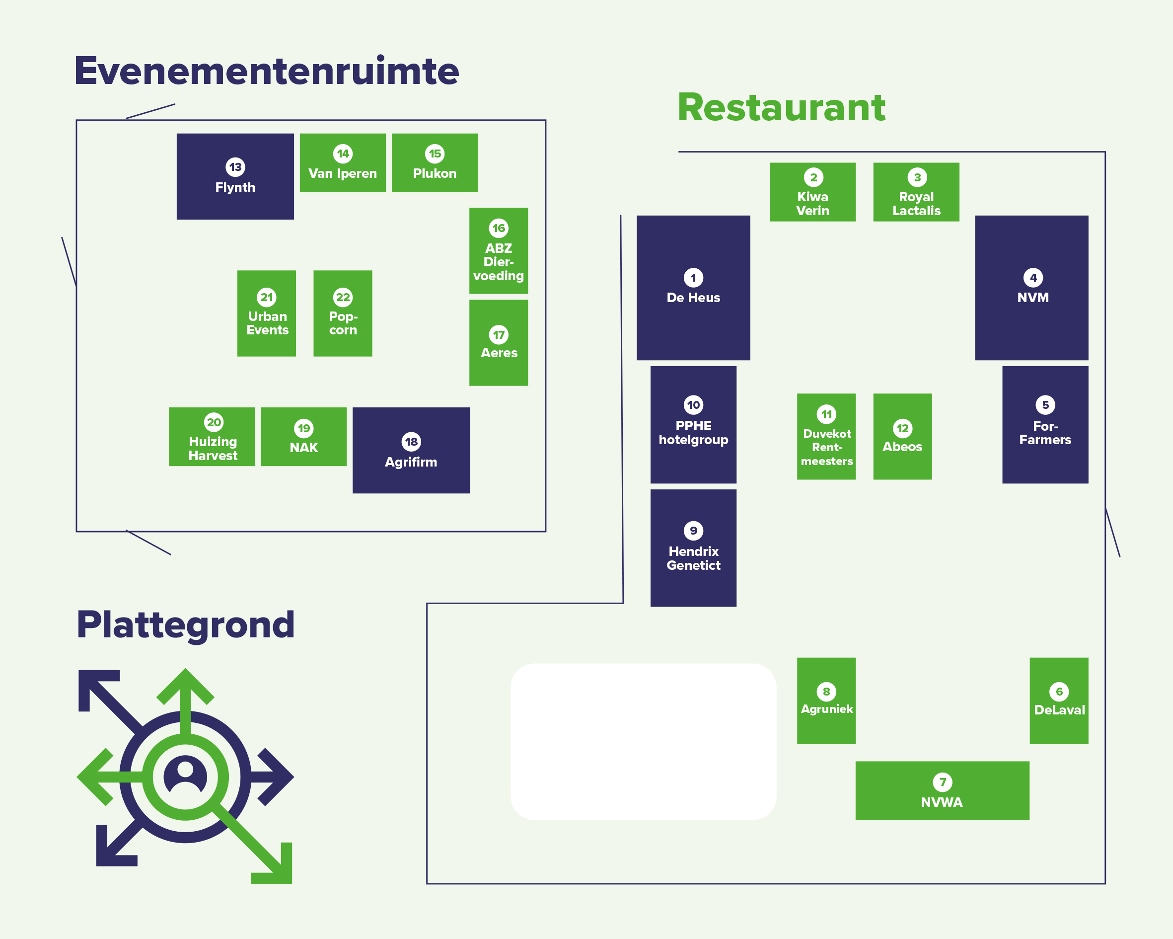 Op de plattegrond kun je precies zien waar je jouw favoriete werkgever(s) kunt ontmoeten.